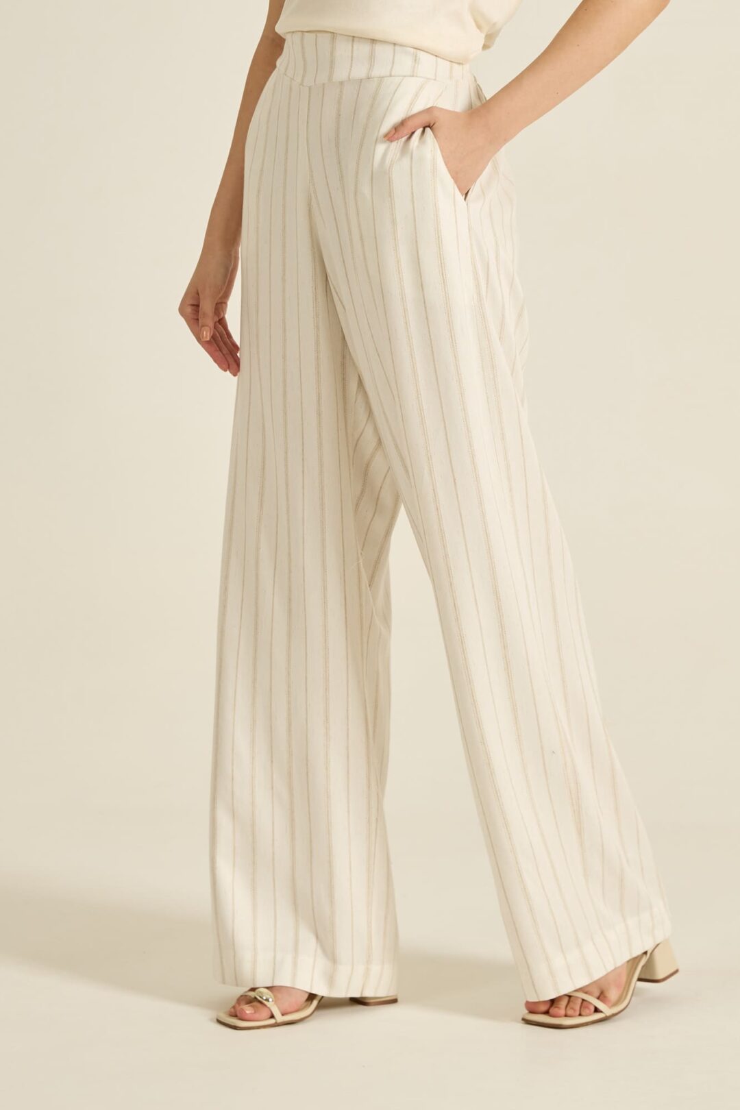 Calça confeccionada em tecido de fios de linho e viscose. Possui elástico nas costas, bolsos faca, modelagem e acabamento de alta qualidade.