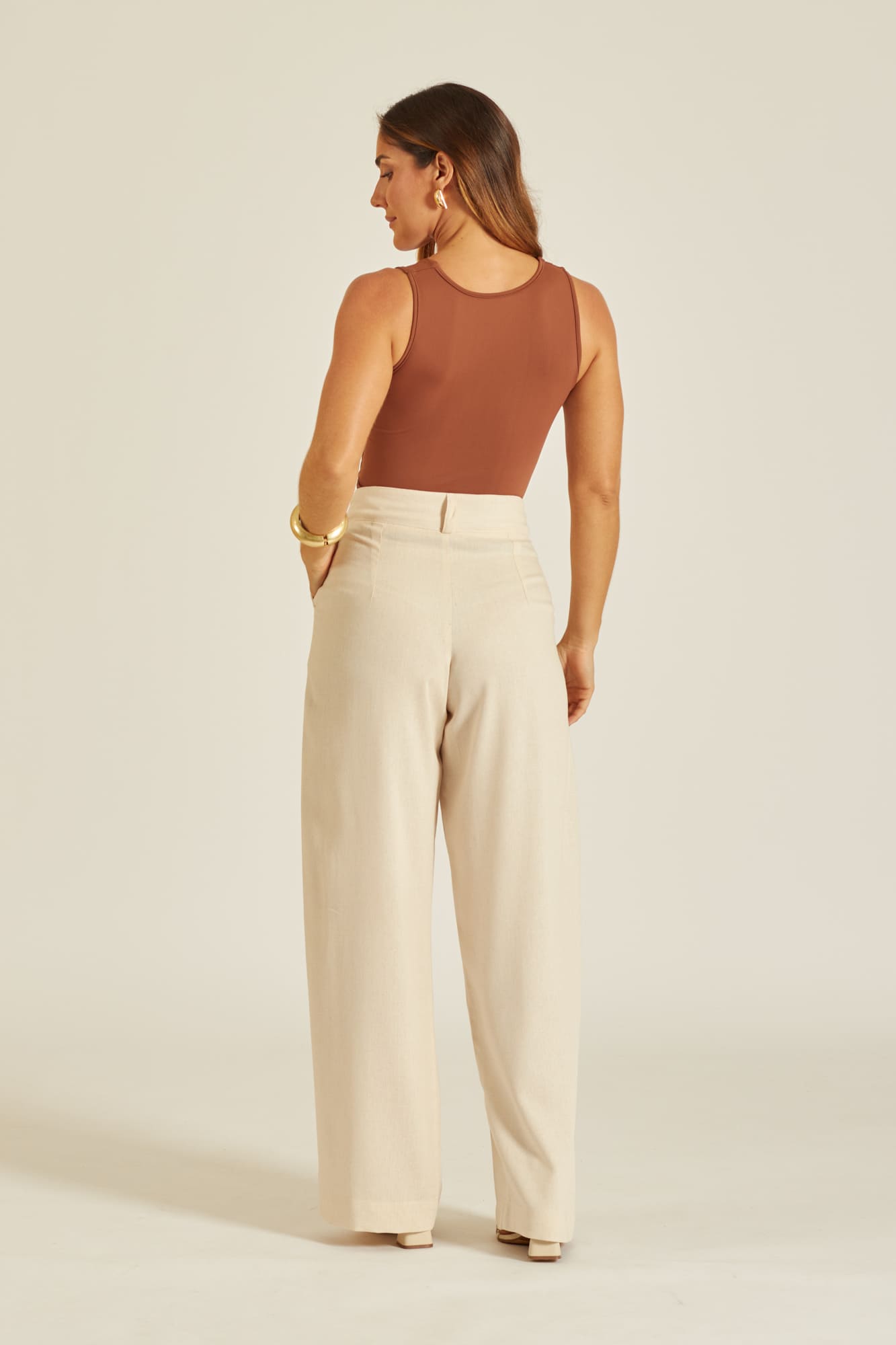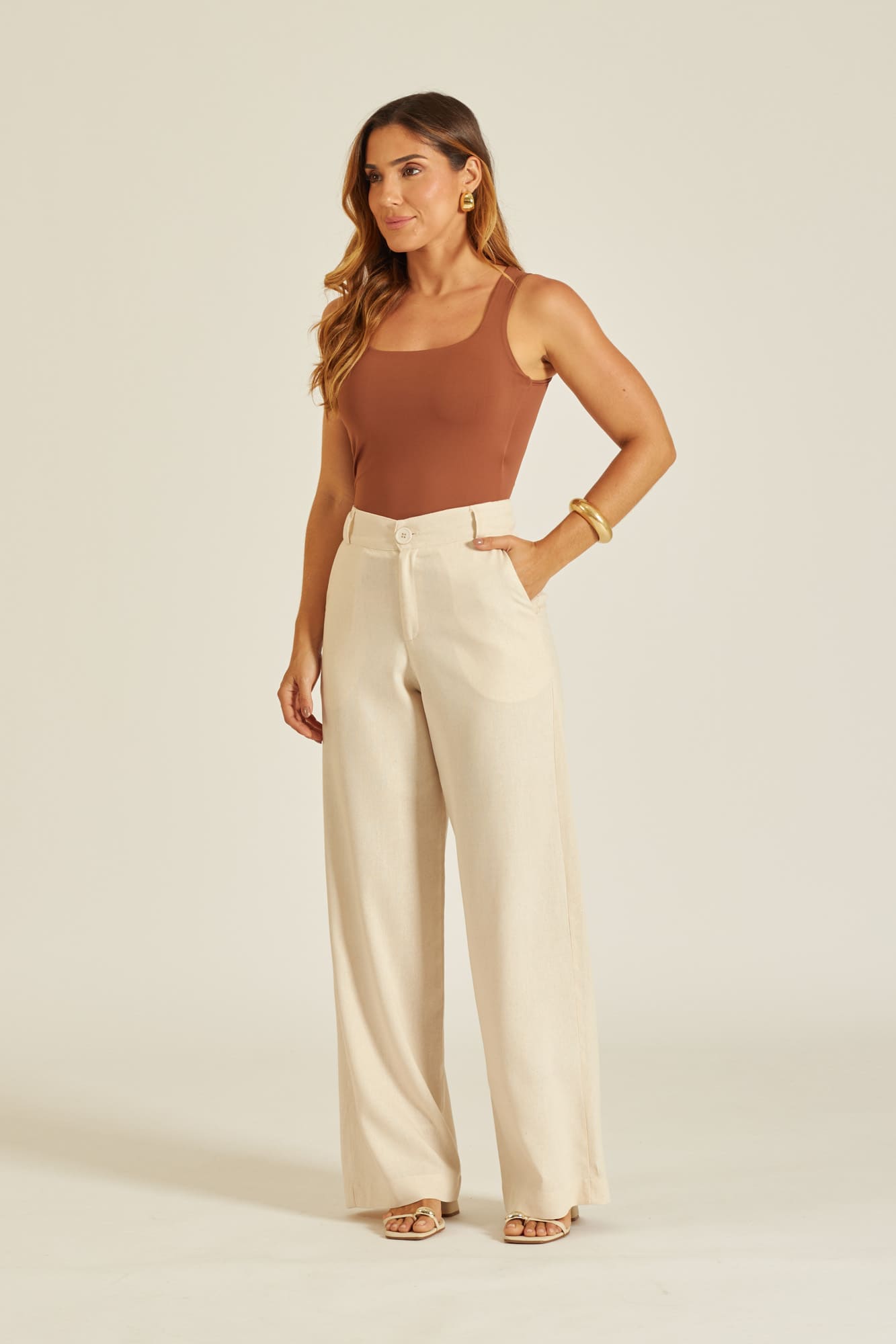 Por ser confeccionada em linho e viscose, a calça Zoe possui um movimento mais harmônico e elegante.