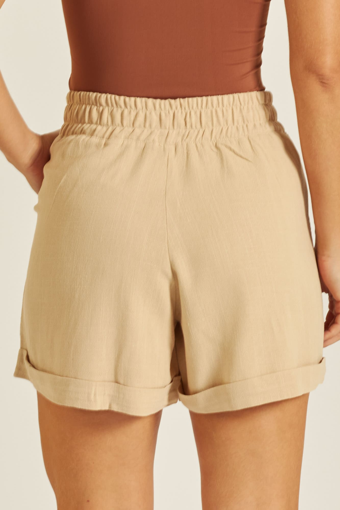 Short com elástico no cós, modelagem confortável e acabamento com bainha inglesa