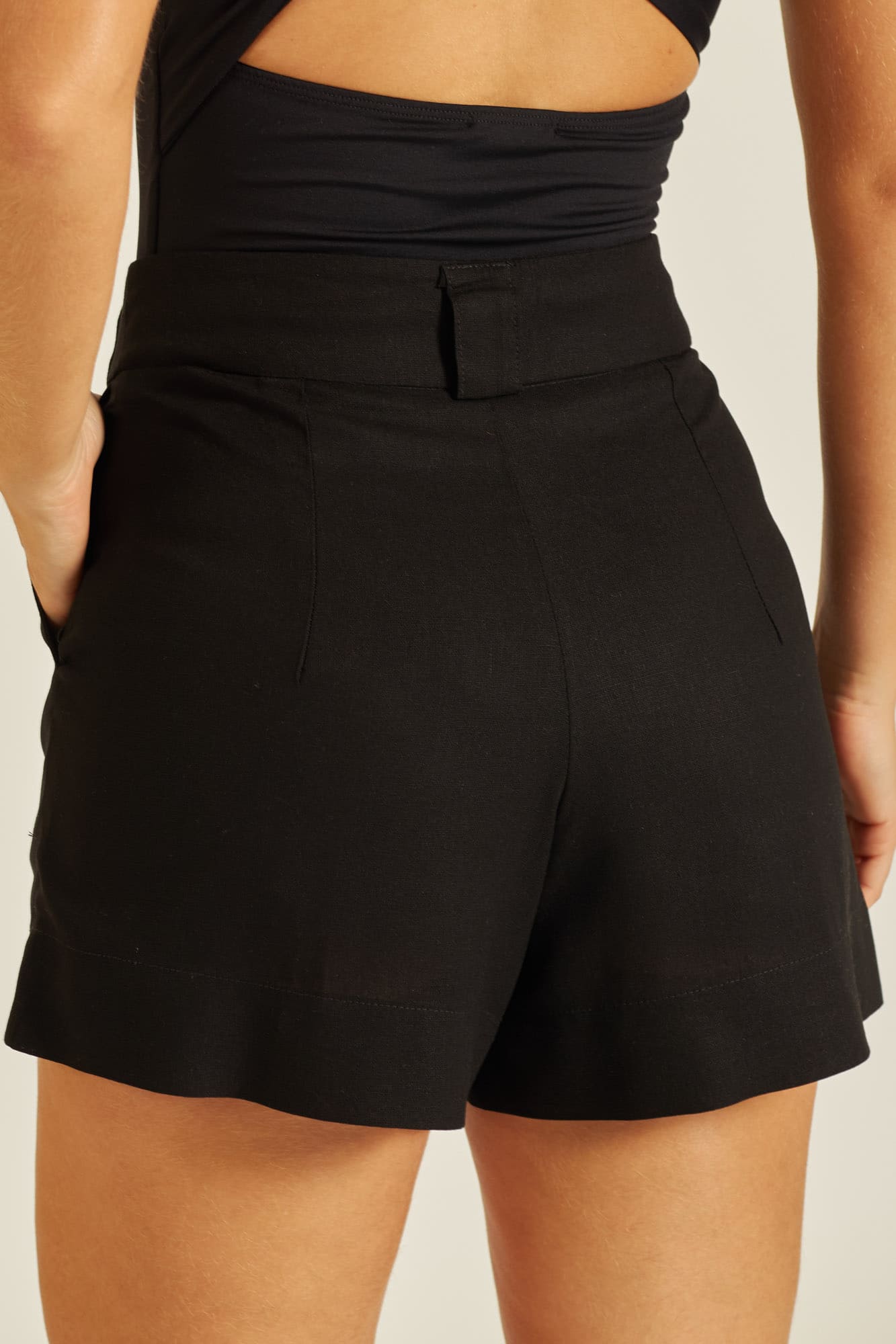 Short confeccionado em tecido de fios de linho e viscose. Com modelagem elegante e acabamento de alta qualidade, possui bolsos faca e botões tingidos na cor do tecido.